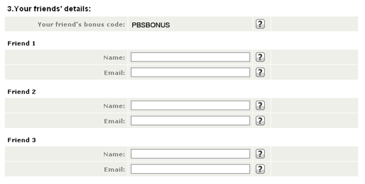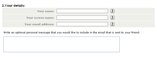 Here is the part of the form which is based on you. You simply insert your name, screen name and email so Party Poker can track where the players are coming from and also so your friends know who sent the email. You can then leave a personal message to them, so they can be sure it is you not another spam email.